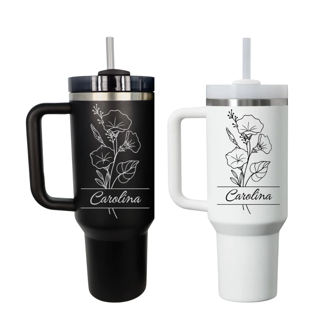 Introducing Strawvarie Cheer, your perfect companion for hot or cold drinks on-the-go! This 40oz stainless steel tumbler keeps your beverages at the right temperature for hours, thanks to its advanced insulation. With a 3-way lid and included straw, you can sip, gulp, or close it with ease. The sleek design fits most car cup holders, and the comfortable handle makes it easy to carry. Plus, it's dishwasher safe for hassle-free cleaning. Make a statement with your personalized tumbler, available in various colors. It's an ideal gift for yourself or a loved one, symbolizing thoughtfulness and care.